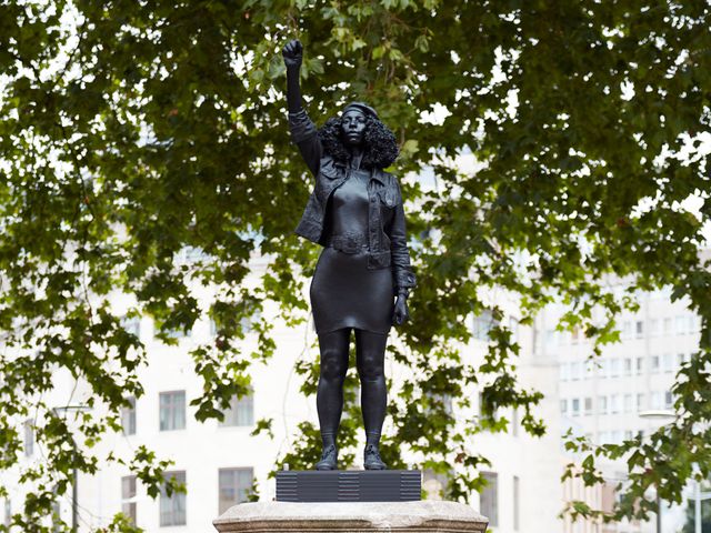 Installed overnight, the work depicts local resident Jen Reid who was photographed on the site when the monument was toppled last month
