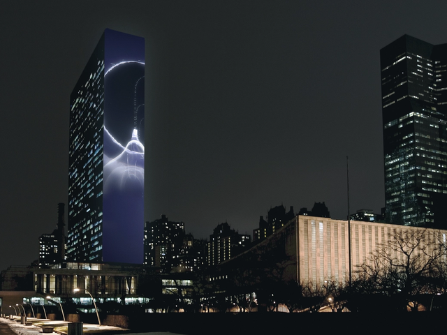 The Danish art collective will show one work on the façade of the international agency's Manhattan headquarters next week