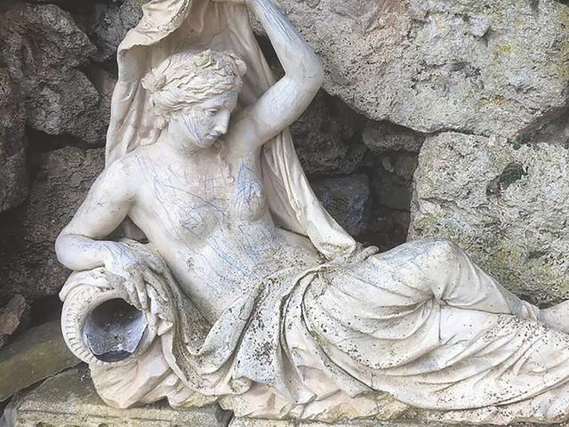 A 230-year-old statue of a water nymph was scrawled over in blue ink